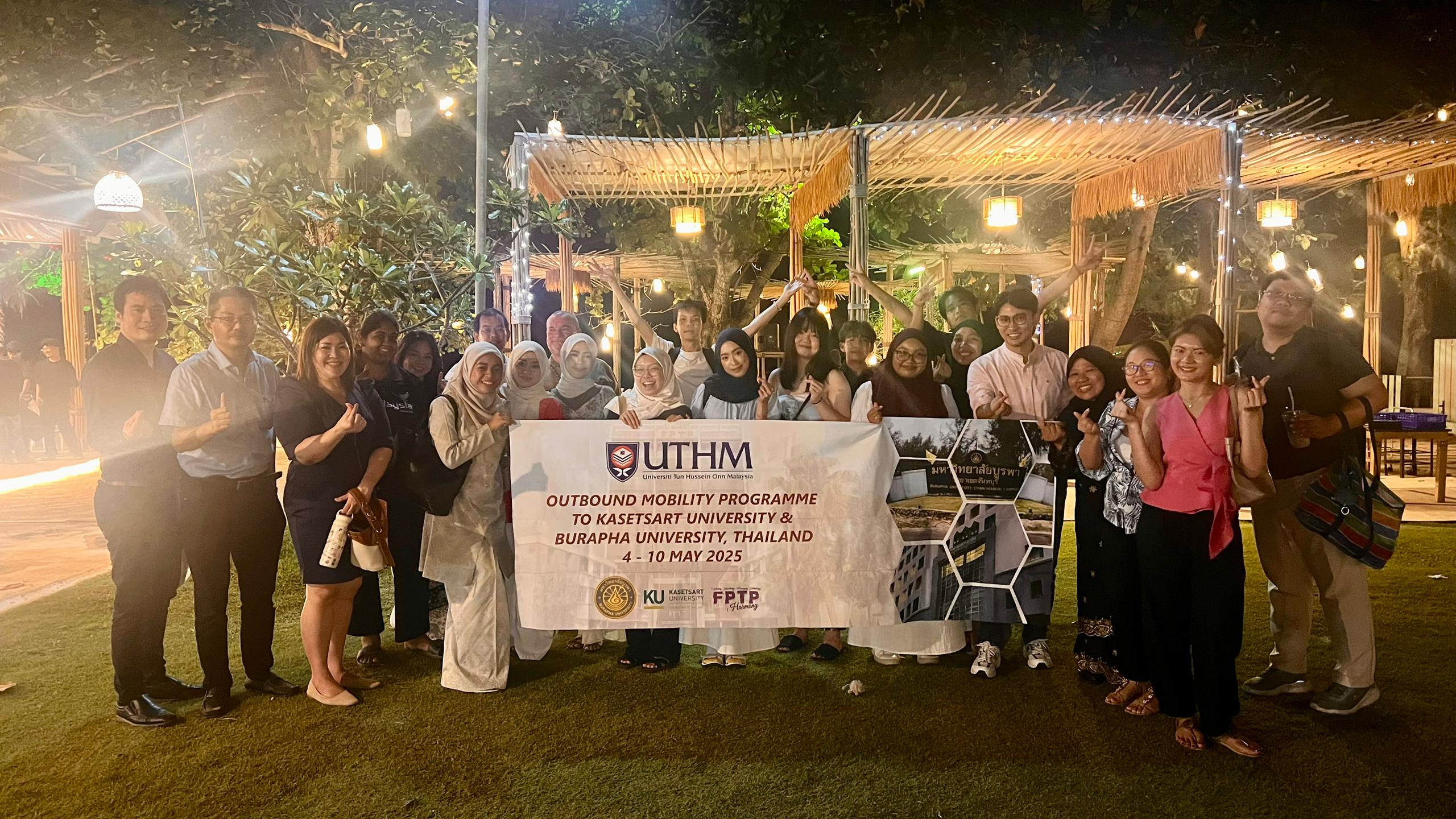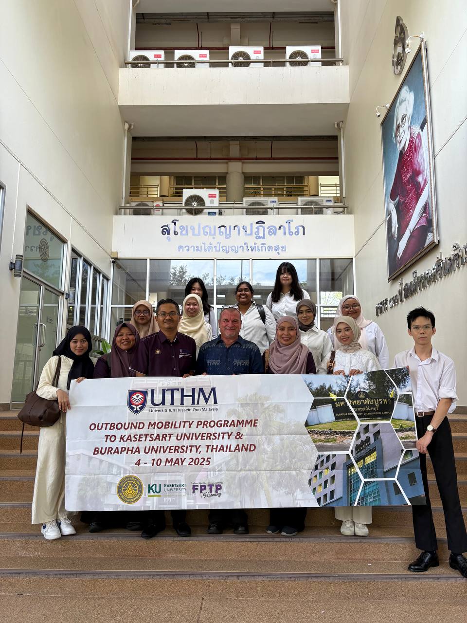 THAILAND - Fakulti Pengurusan Teknologi dan Perniagaan (FPTP), Universiti Tun Hussein Onn Malaysia (UTHM) telah menganjurkan Program Mobiliti Antarabangsa Berkredit ke Thailand dari 4 hingga 10 Mei 2025, melibatkan dua universiti ternama, Kasetsart University (KU) dan Burapha University (BUU).